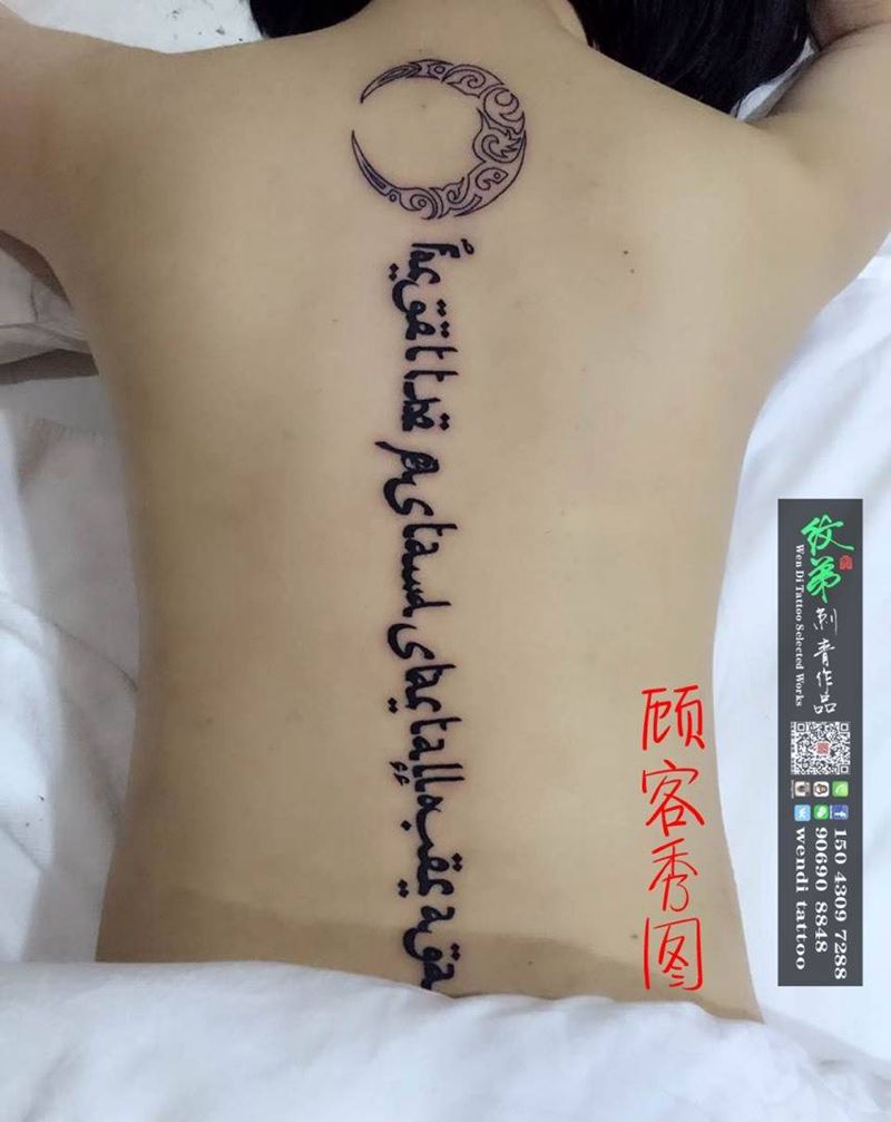 顾客秀图纹身图片_成品背部传统清新字符纹身图案