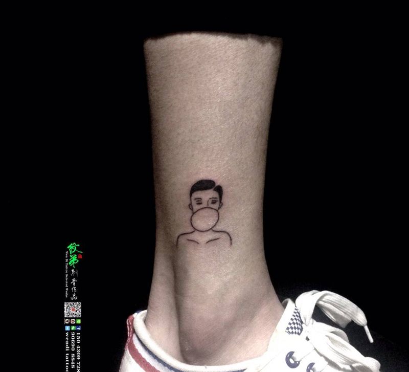 • T包小腿吹火男+阿多福纹身图片_腿部老传统新传统吹火男阿