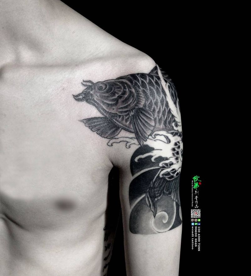 鲤鱼遮盖臂环。纹身图片_成品肩部手臂传统动物修改遮盖纹身图案