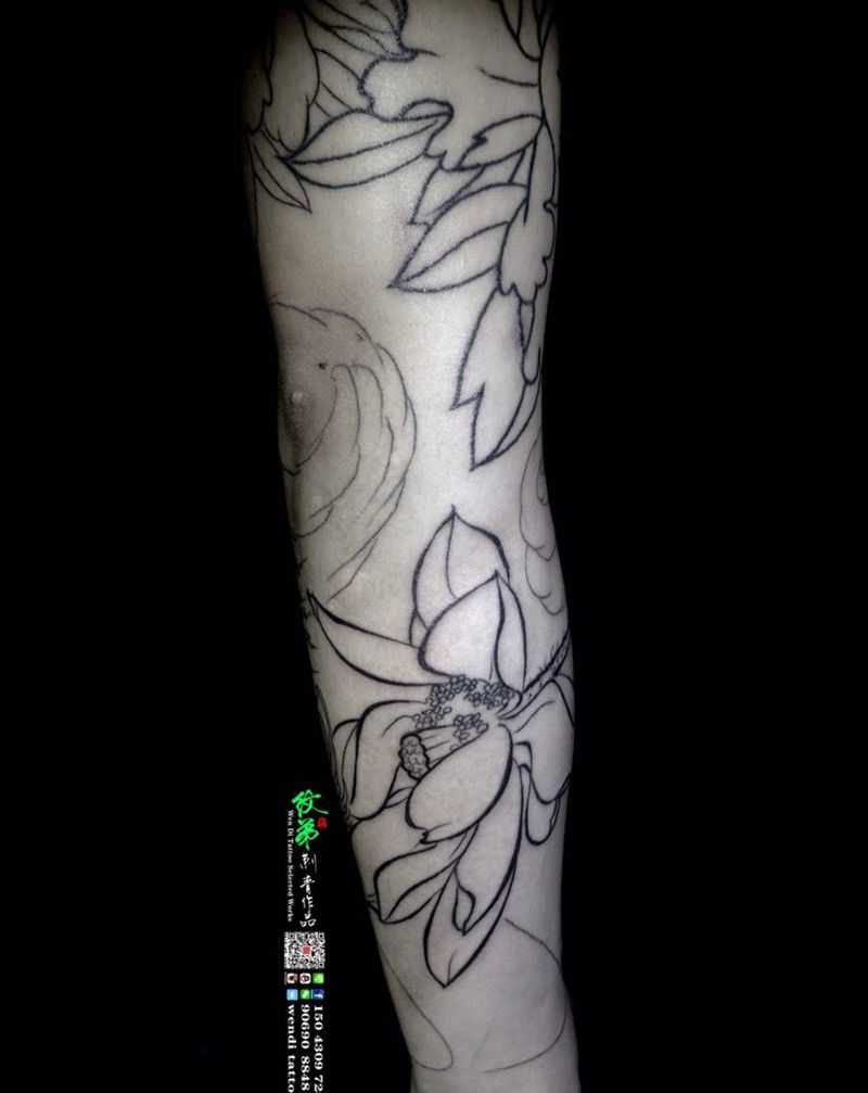 一组15张莲花纹身手