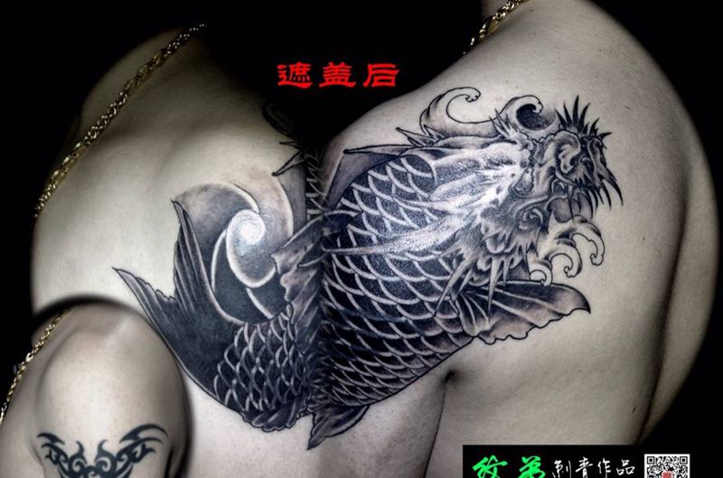 黑灰满背纹身图案