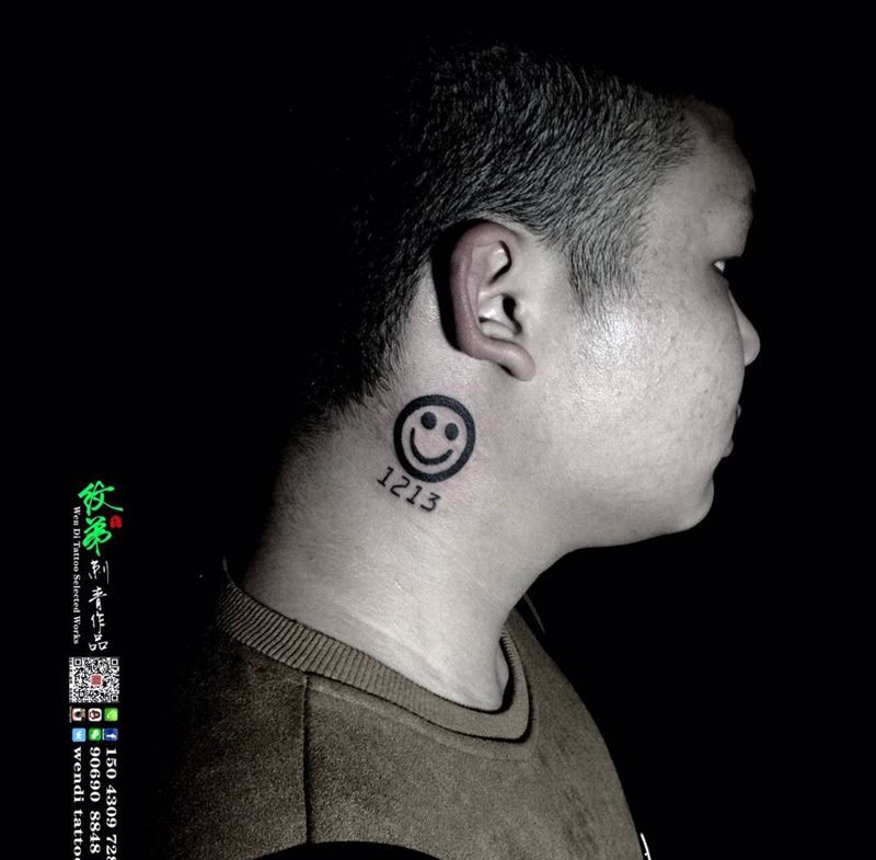 当前位置: 首页 >浙江省温州市纹身店-俺耀文身纹身图案>笑脸☻纹身图片_成品颈部清新字符纹身图案