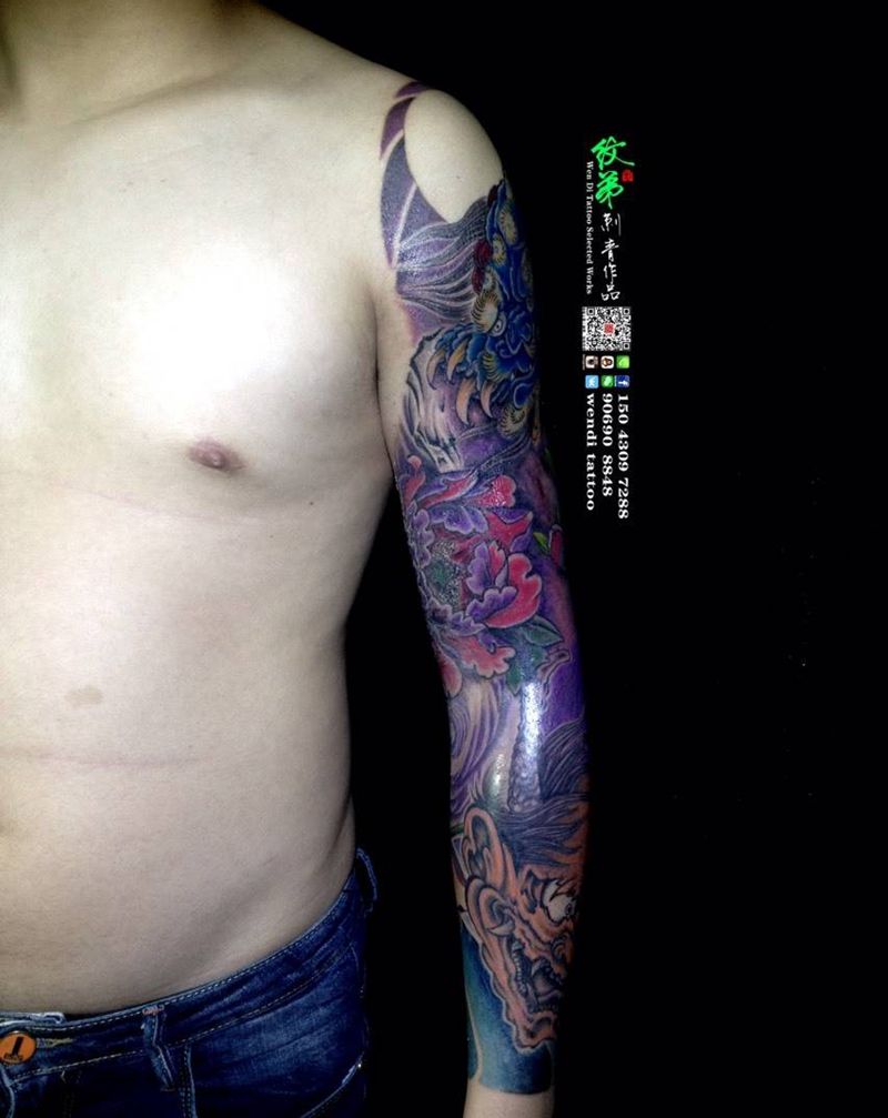 当前位置: 首页 >浙江省温州市纹身店-俺耀文身纹身图案>彩色花臂纹身图片_手臂传统图腾鬼神动物植物纹身图案