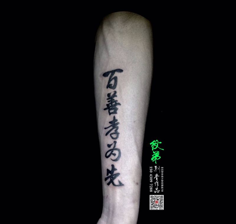 百善孝为先纹身图片_成品手臂传统字符书法原创纹身图案