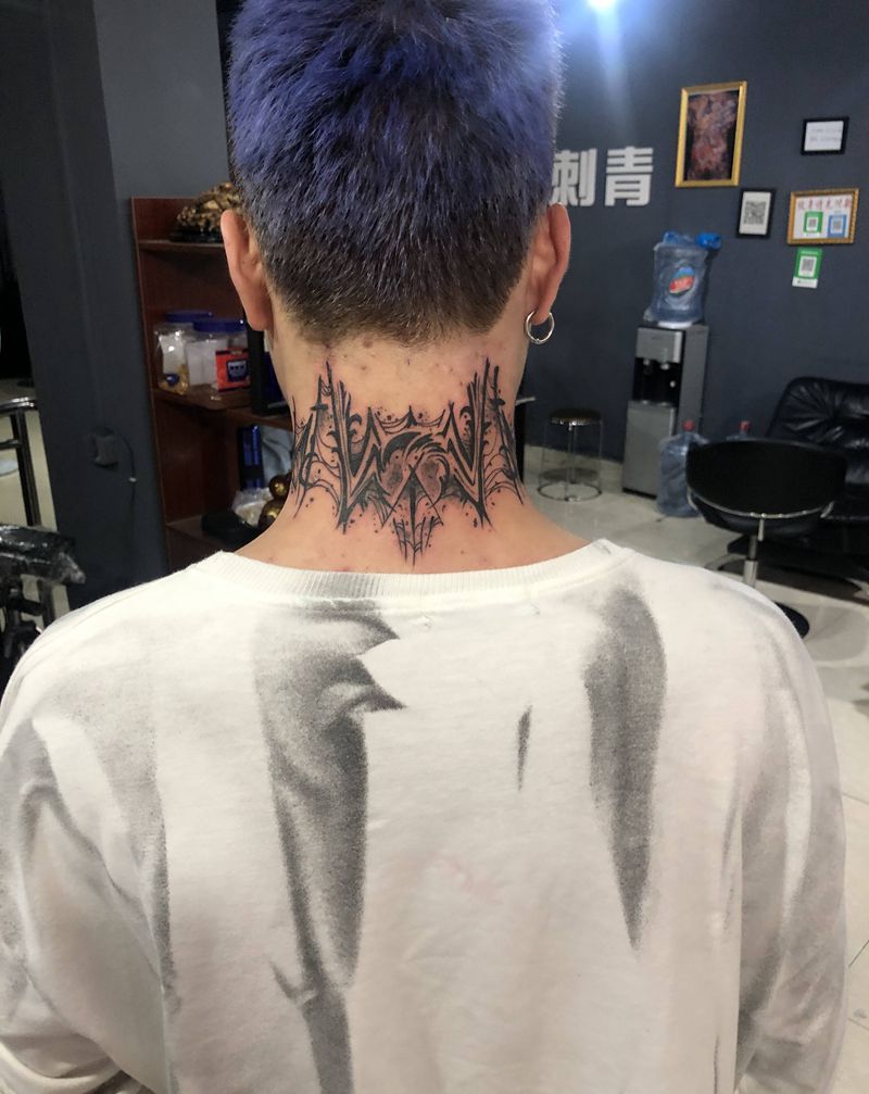 当前位置: 首页 >浙江省温州市纹身店-芸艺纹身纹身图案>脖子纹身图片_新传统花体脖子纹身图案