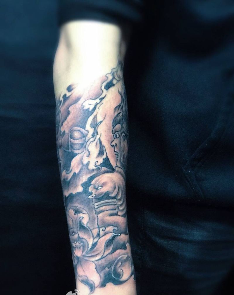 当前位置: 首页 >浙江省温州市纹身店-董玮刺青纹身图案>包小臂.大黑天纹身图片