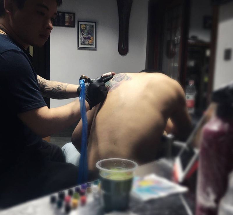当前位置: 首页 >浙江省嘉兴市纹身店-精雕刺青 嘉兴总店纹身图案>传统彩色臂膀纹身图片