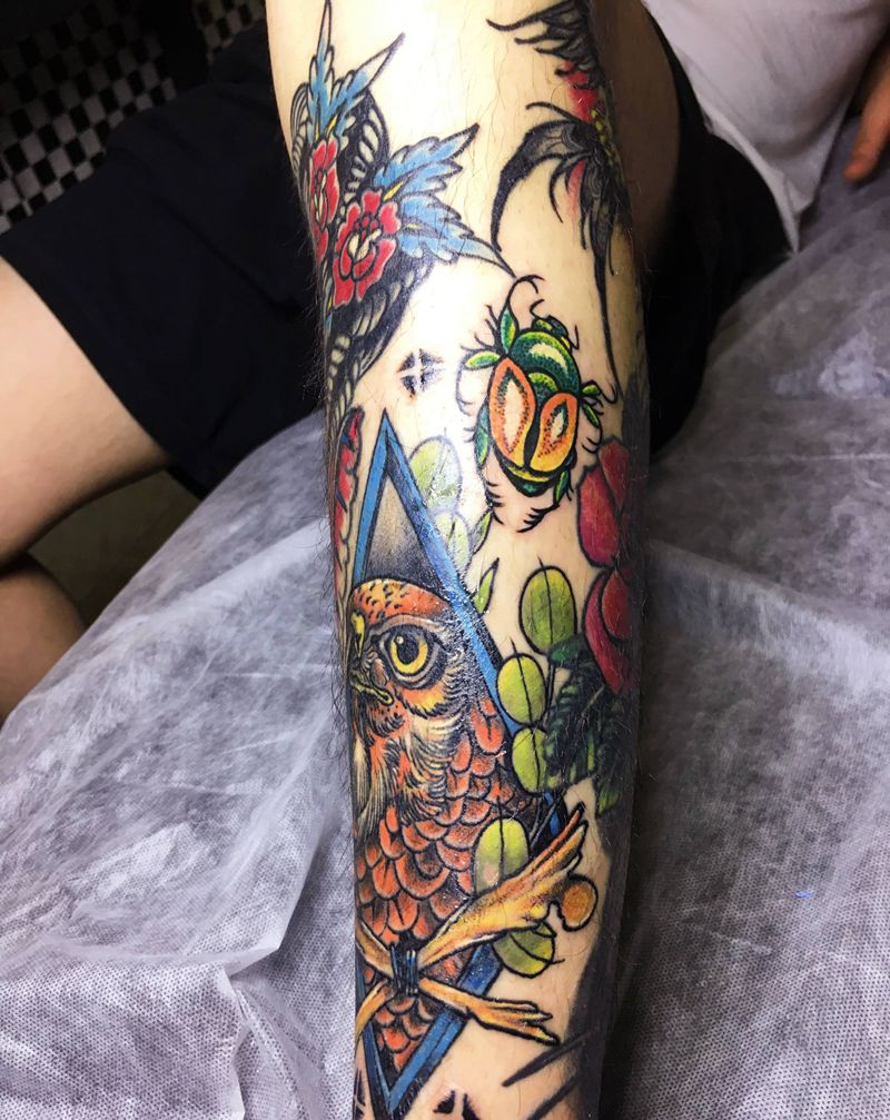• T网红王老大花腿龙纹身图片_腿部新传统纹身图案