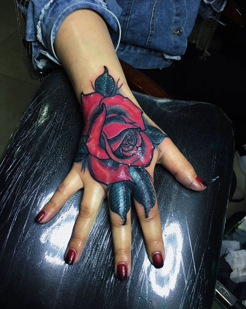 欧美风玫瑰花纹身图片_手部New School新传统纹身图案