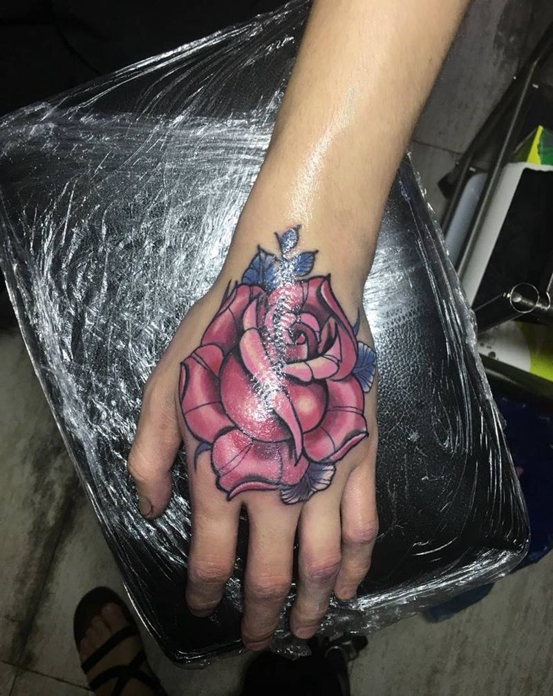 • 手背潮流时尚的玫瑰花眼睛纹身图案