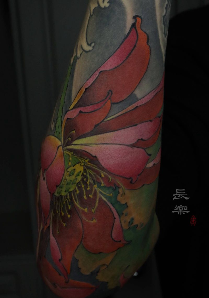 当前位置: 首页 >浙江省湖州市纹身店-長樂刺青纹身图案>荷纹身图片_手部手臂新传统水彩荷花鲤鱼荷纹身图案