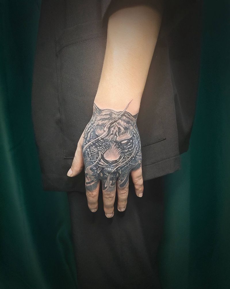 当前位置: 首页 >浙江省嘉兴市纹身店-极致刺青纹身图案>虎纹身图片_手部新传统纹身图案