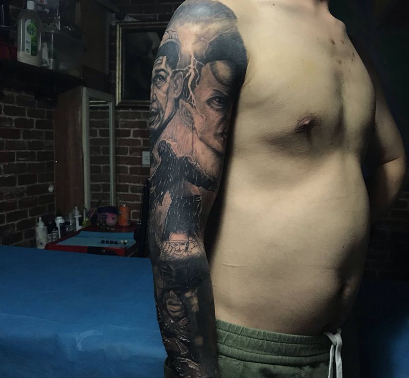 当前位置: 首页 >浙江省嘉兴市纹身店-极致刺青纹身图案>黑灰作品纹身图片_手臂欧美写实纹身图案