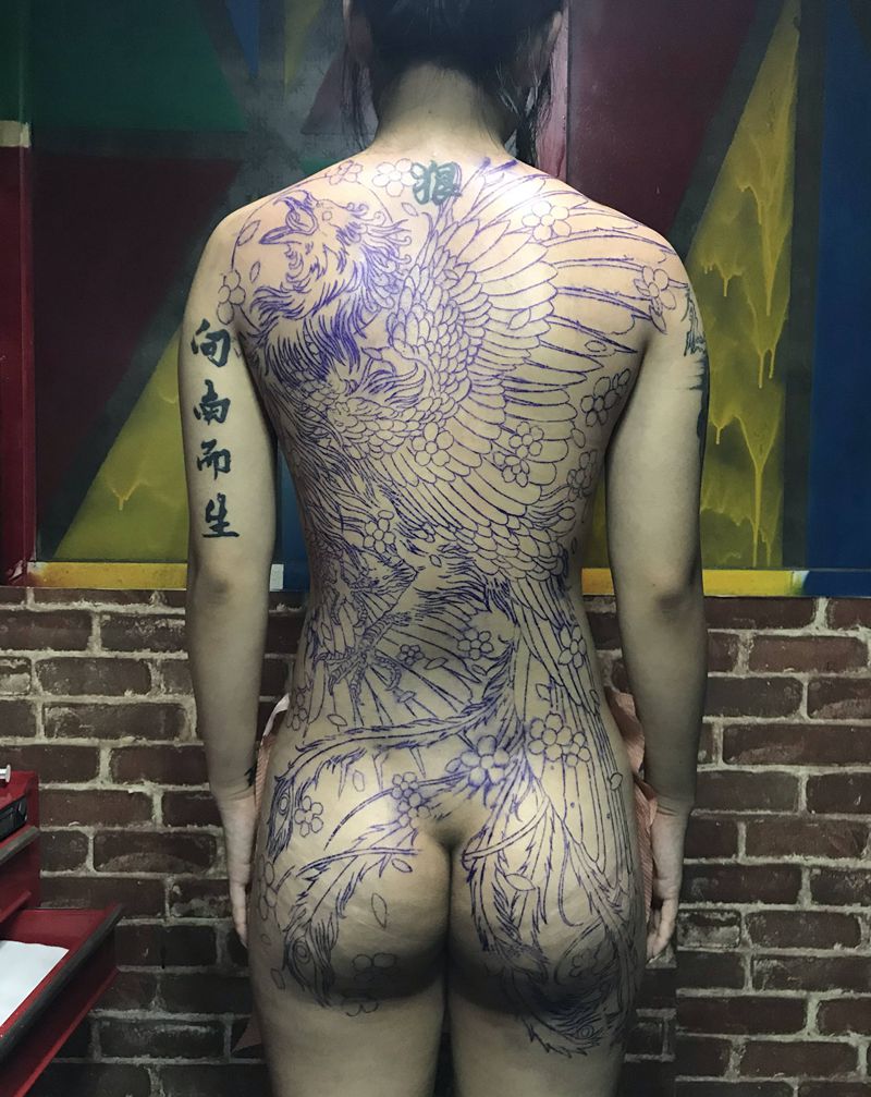 女子大满背凤凰纹身图片_背部臀部新传统纹身图案