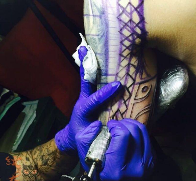 当前位置: 首页 >浙江省嘉兴市纹身店-极致刺青纹身图案>图腾花臂,初步纹身图片