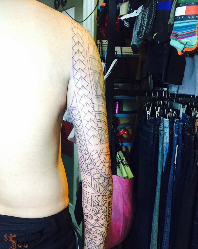 当前位置: 首页 >浙江省嘉兴市纹身店-极致刺青纹身图案>图腾花臂,初步纹身图片