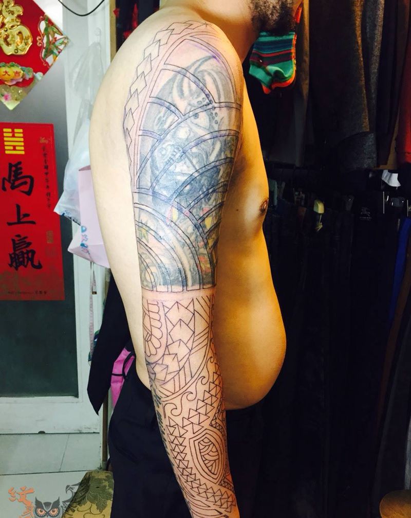 当前位置: 首页 >浙江省嘉兴市纹身店-极致刺青纹身图案>图腾花臂,初步纹身图片