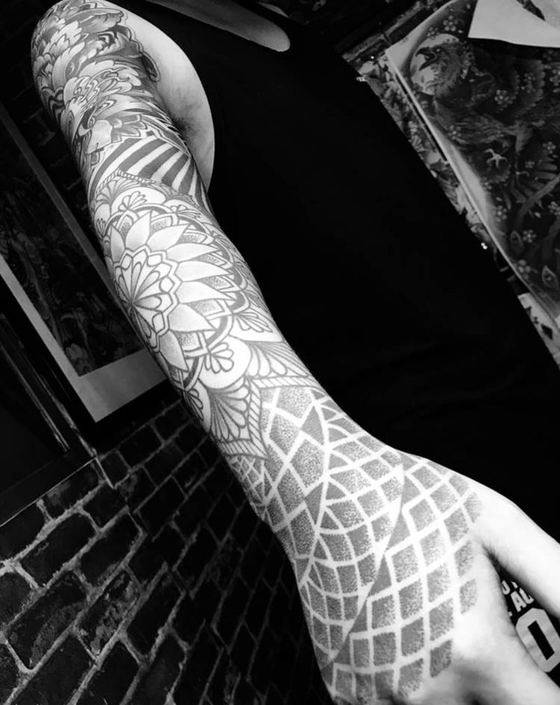 图腾花臂纹身图片_手臂点刺图腾纹身图案