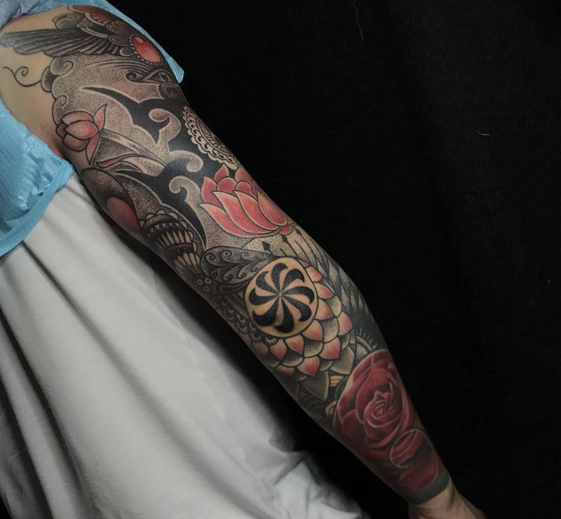 当前位置: 首页 >浙江省嘉兴市纹身店-极致刺青纹身图案>几何花臂纹身图片_手臂图腾点刺纹身图案
