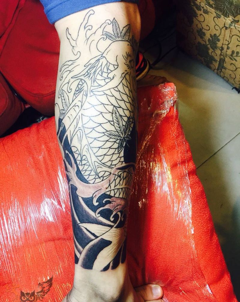 • T网红王老大花腿龙纹身图片_腿部新传统纹身图案