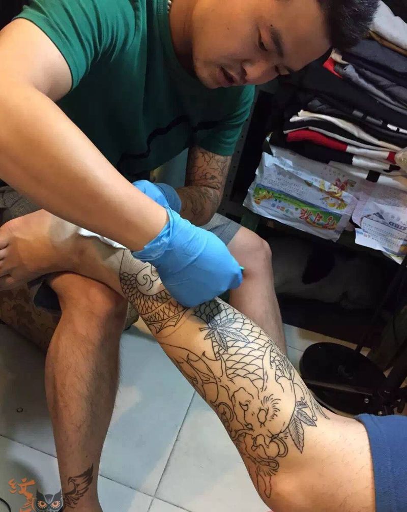 • T网红王老大花腿龙纹身图片_腿部新传统纹身图案
