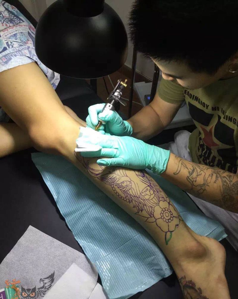 • T网红王老大花腿龙纹身图片_腿部新传统纹身图案