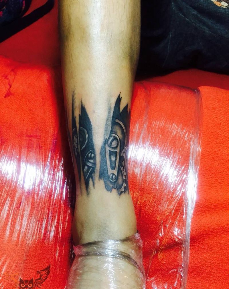 • T包小腿吹火男+阿多福纹身图片_腿部老传统新传统吹火男阿