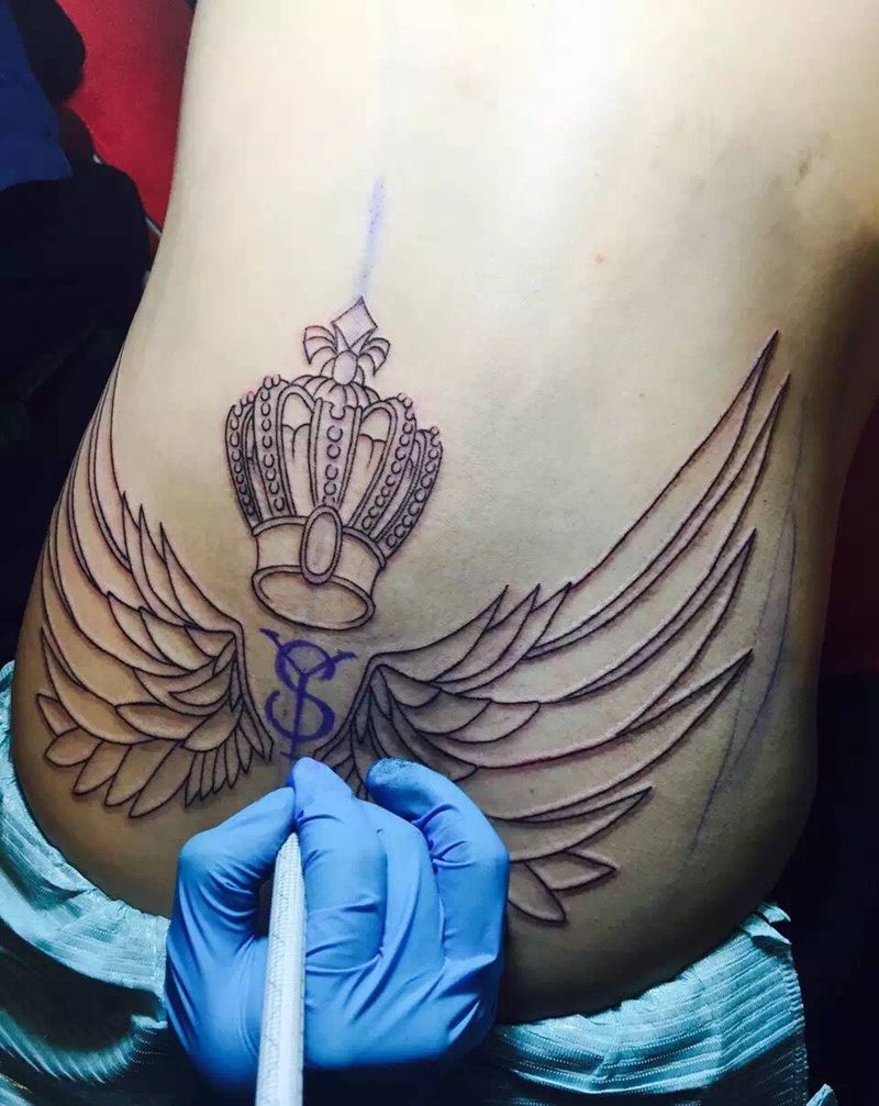 当前位置: 首页 >浙江省嘉兴市纹身店-极致刺青纹身图案>皇冠翅膀纹身图片