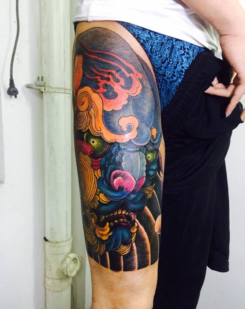 • T网红王老大花腿龙纹身图片_腿部新传统纹身图案