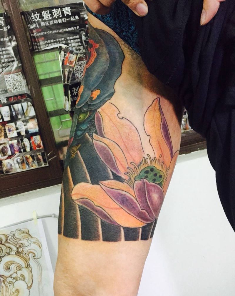 • T网红王老大花腿龙纹身图片_腿部新传统纹身图案