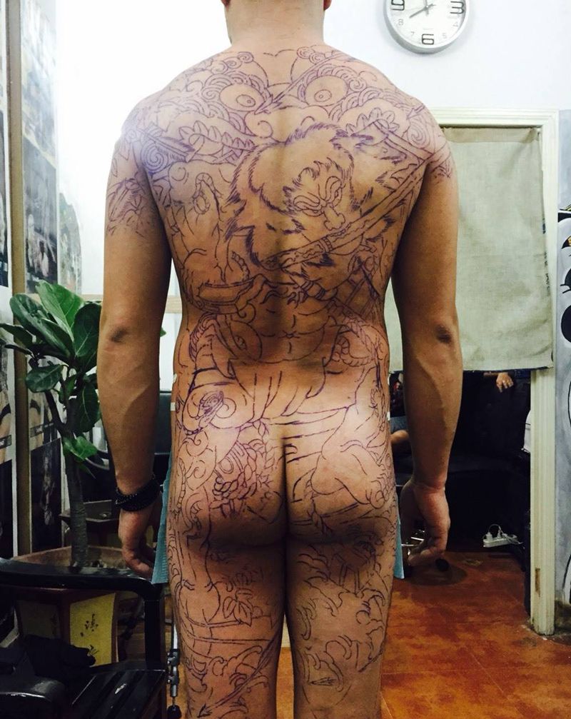 • T云龙九郎纹身图片_背部老传统云龙九郎纹身图案