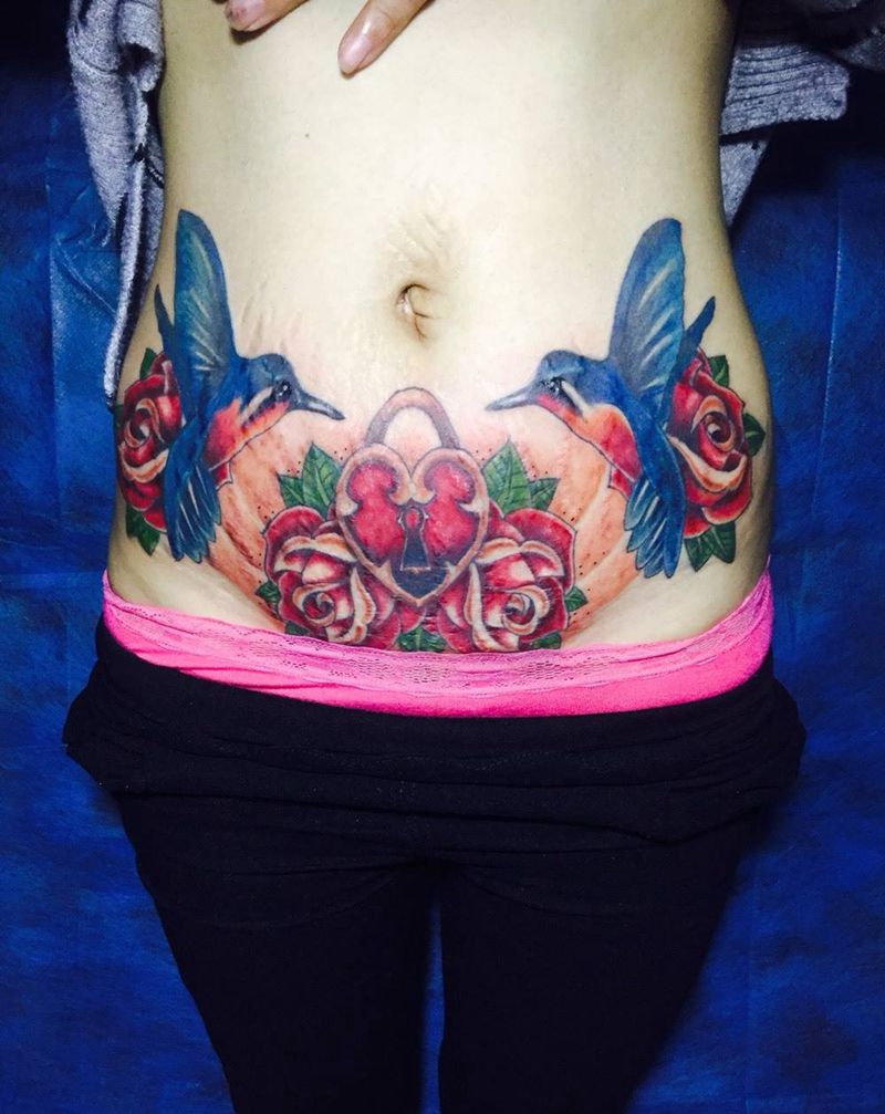 • T关于私处得爱!纹身图片_成品腹部清新字符图腾纹身图案