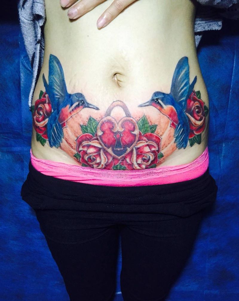 • 时尚性感的腹部莲花纹身图案