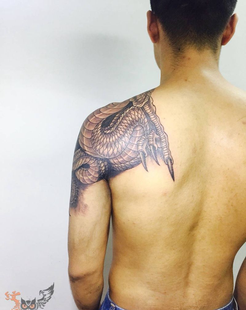 • 纹身吧推荐的披肩图腾半胛纹身图案作品展示