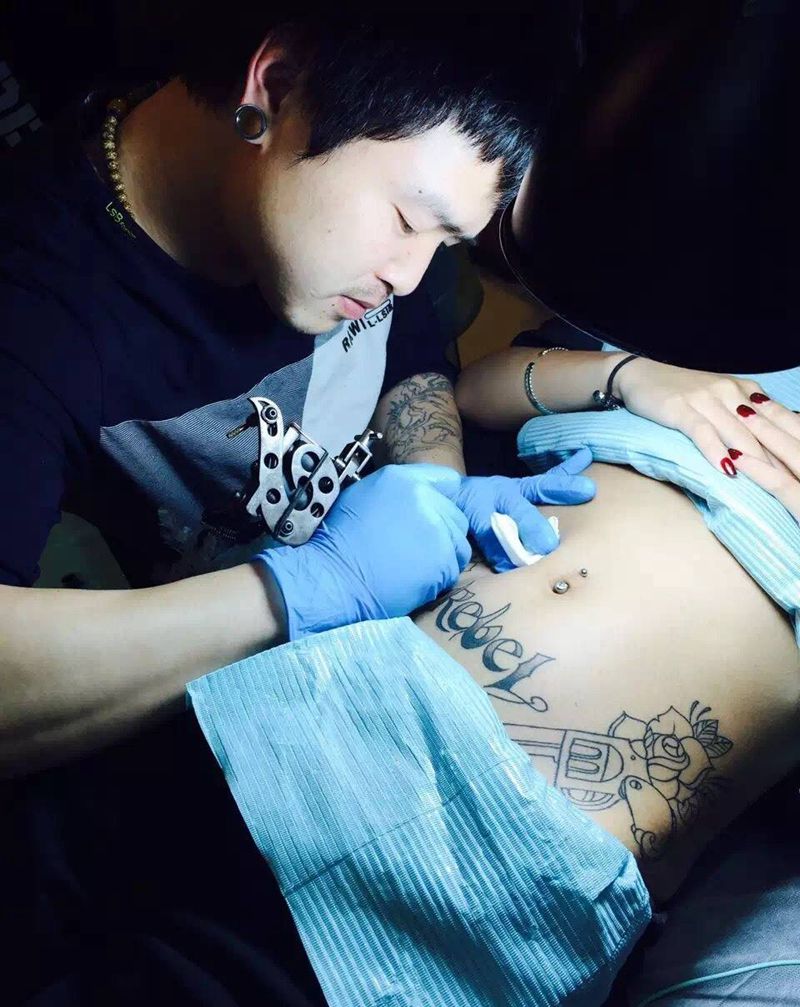 当前位置: 首页 >浙江省嘉兴市纹身店-极致刺青纹身图案>小腹双枪玫瑰~纹身图片