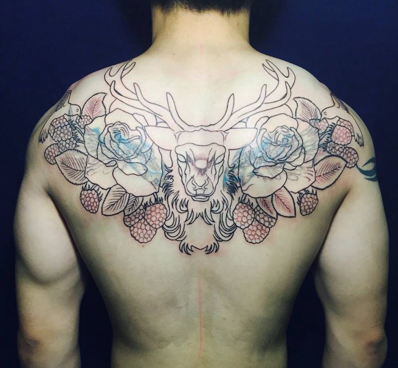 当前位置: 首页 >浙江省嘉兴市纹身店-极致刺青纹身图案>雄鹿遮盖纹身图片