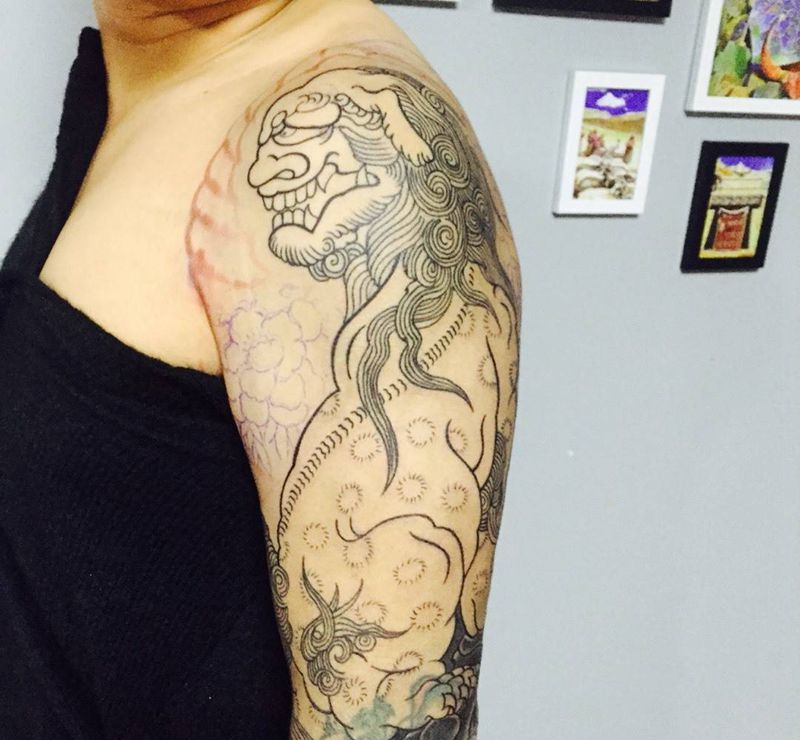 当前位置: 首页 >浙江省嘉兴市纹身店-极致刺青纹身图案>唐狮花臂,又是遮盖~纹身图片