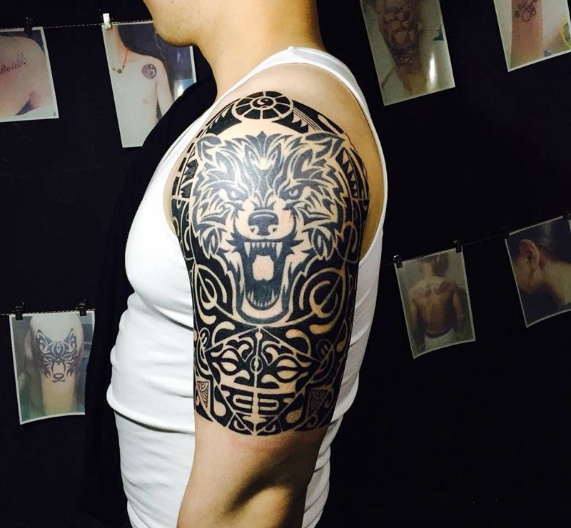 • 纹身吧推荐的披肩图腾半胛纹身图案作品展示