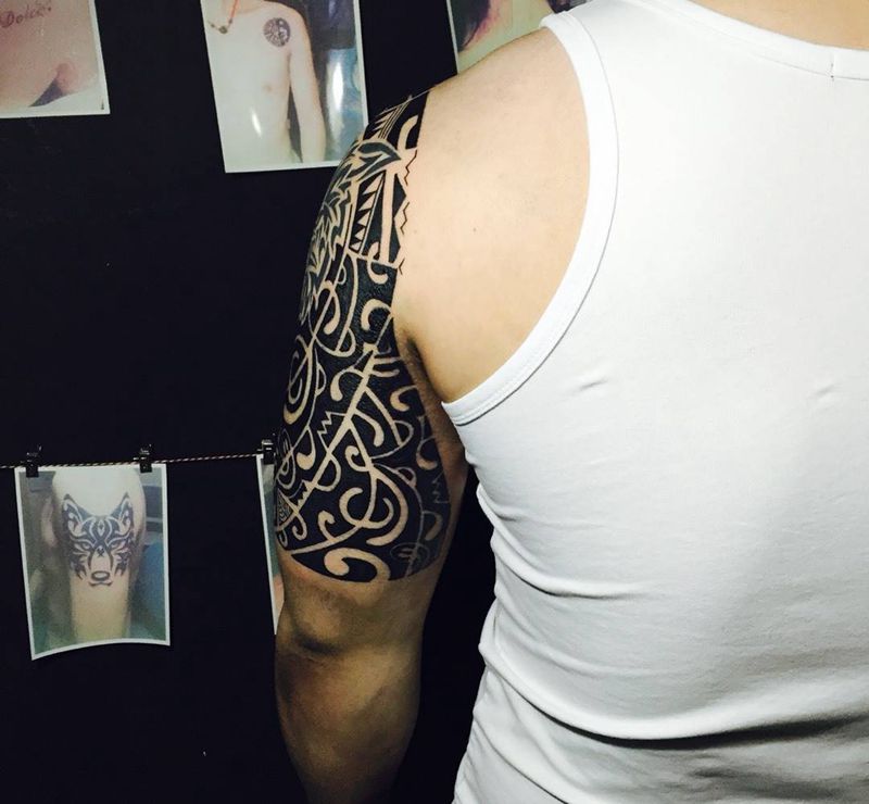 • 纹身吧推荐的披肩图腾半胛纹身图案作品展示