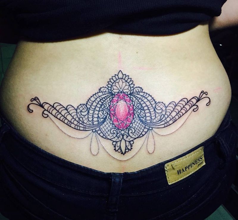 当前位置: 首页 >浙江省嘉兴市纹身店-极致刺青纹身图案>蕾丝腰花纹身图片