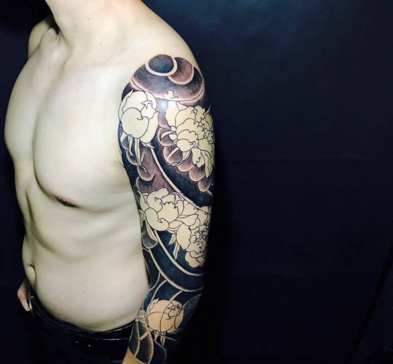 当前位置: 首页 >浙江省嘉兴市纹身店-极致刺青纹身图案>牡丹7分花臂纹身图片
