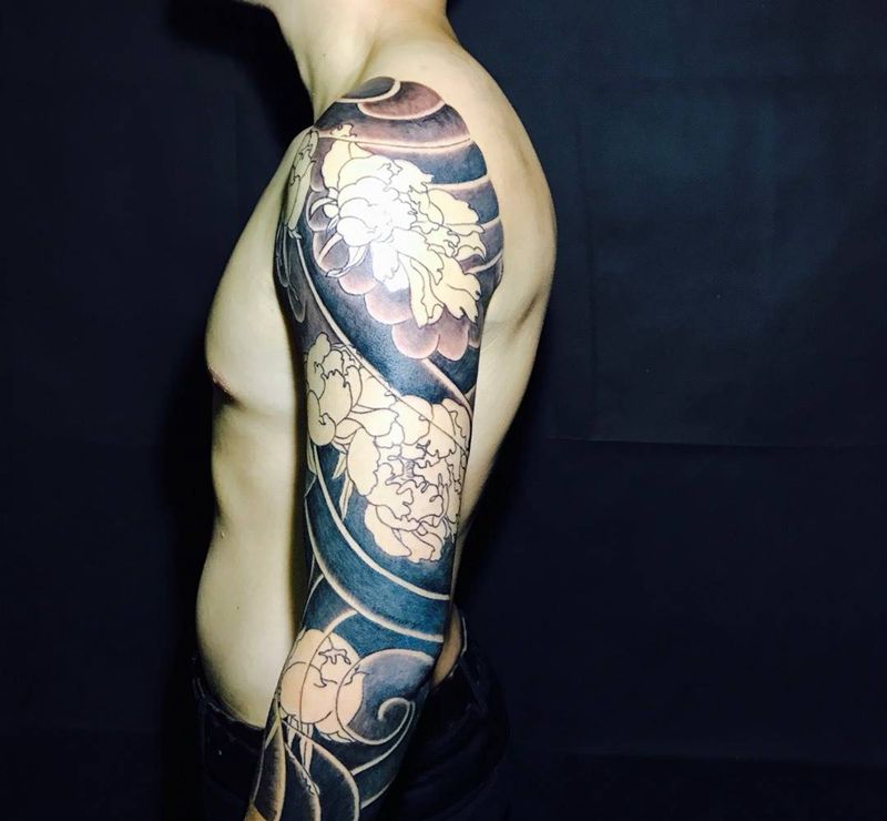 当前位置: 首页 >浙江省嘉兴市纹身店-极致刺青纹身图案>牡丹7分花臂纹身图片