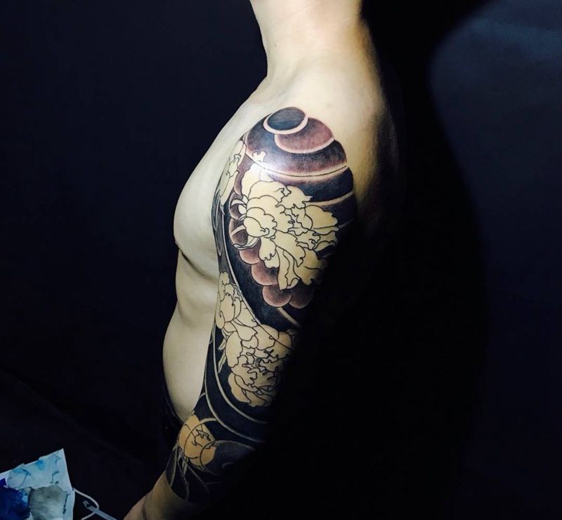 当前位置: 首页 >浙江省嘉兴市纹身店-极致刺青纹身图案>牡丹7分花臂纹身图片