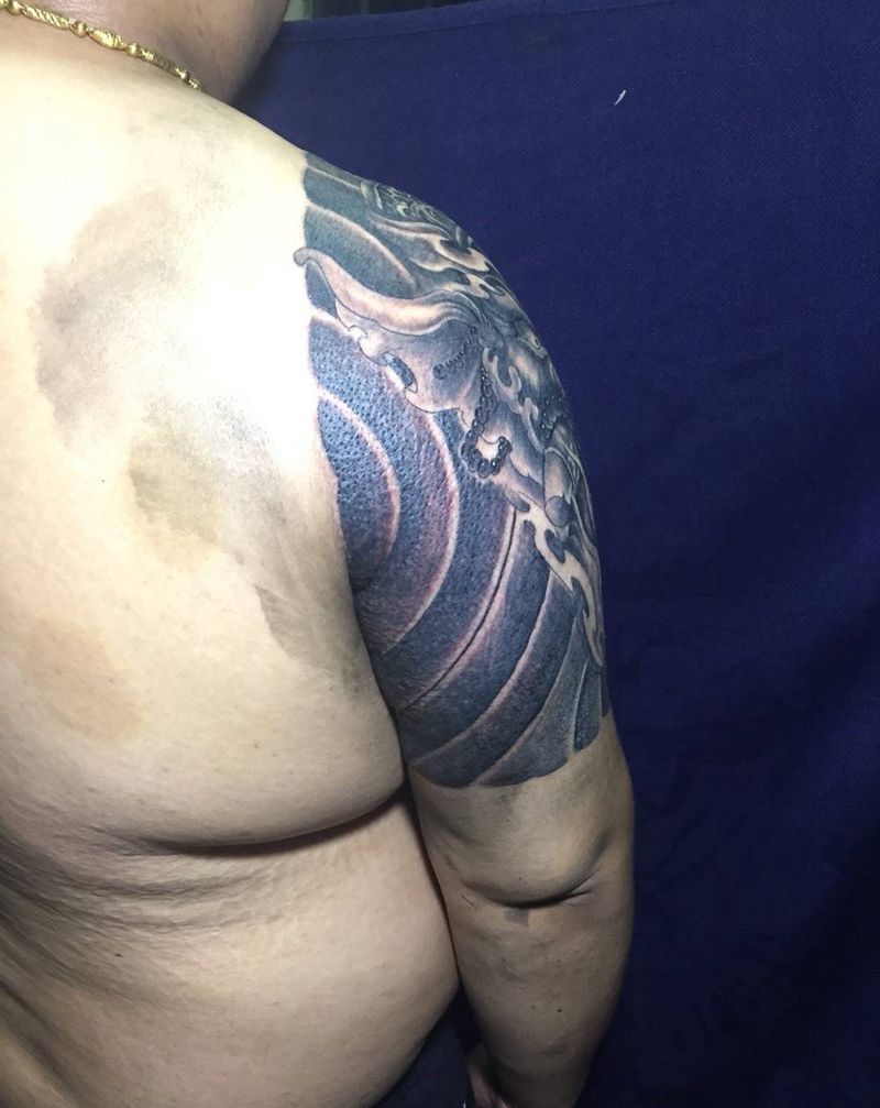 • 纹身吧推荐的披肩图腾半胛纹身图案作品展示