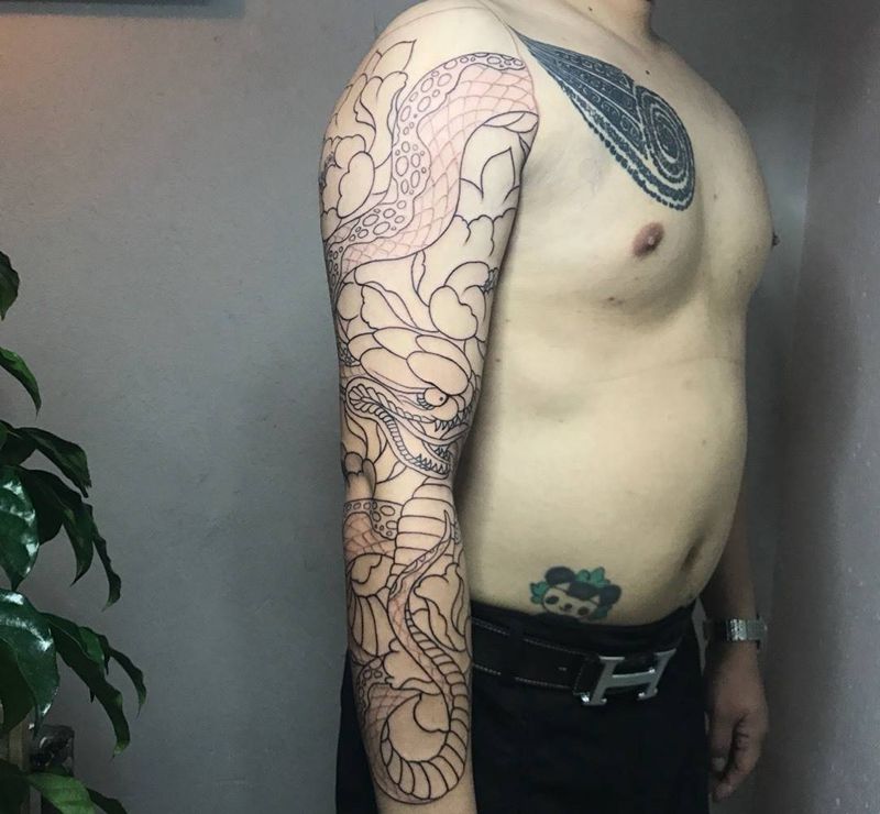 当前位置: 首页 >浙江省嘉兴市纹身店-极致刺青纹身图案>蛇牡丹花臂纹身图片