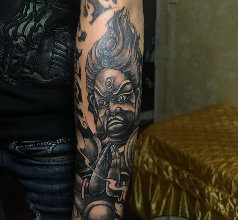 当前位置: 首页 >浙江省嘉兴市纹身店-极致刺青纹身图案>不动明王包小臂纹身图片