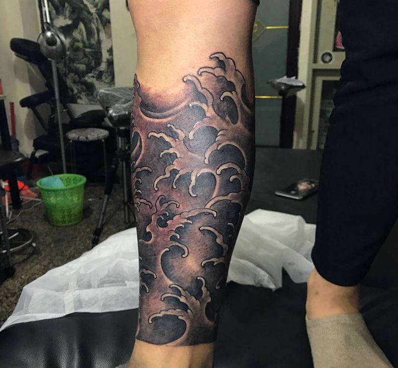 • T网红王老大花腿龙纹身图片_腿部新传统纹身图案