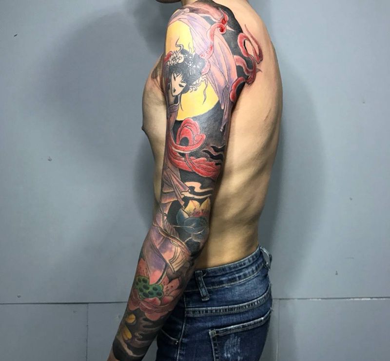 当前位置: 首页 >浙江省嘉兴市纹身店-极致刺青纹身图案>飞天花臂纹身图片