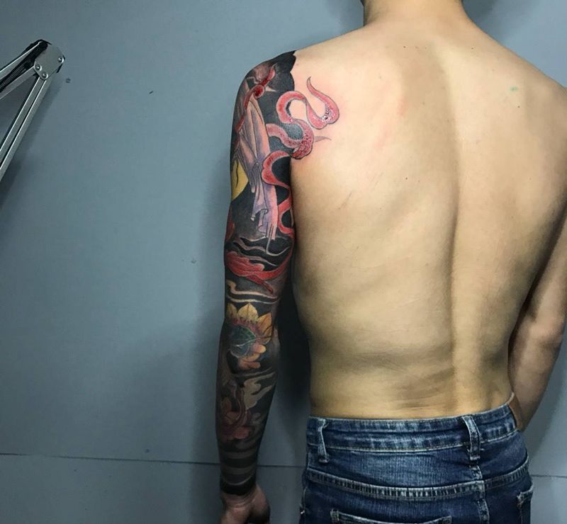 当前位置: 首页 >浙江省嘉兴市纹身店-极致刺青纹身图案>飞天花臂纹身图片