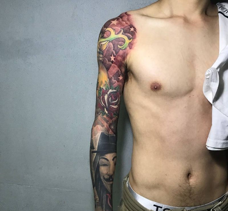 当前位置: 首页 >浙江省嘉兴市纹身店-极致刺青纹身图案>欧美多元素花臂纹身图片